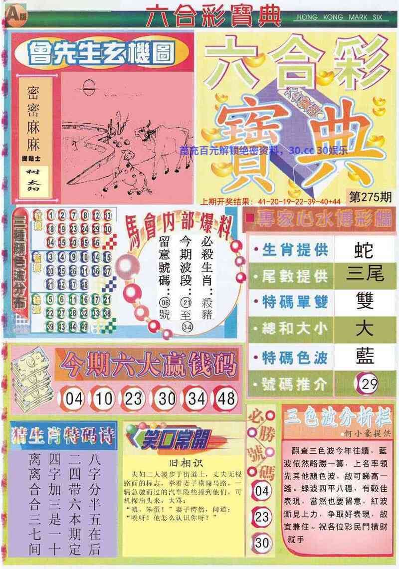 273期:澳门六合彩寶典解特开(虎04) 大赢钱码:04.11.22.36.38.41 |